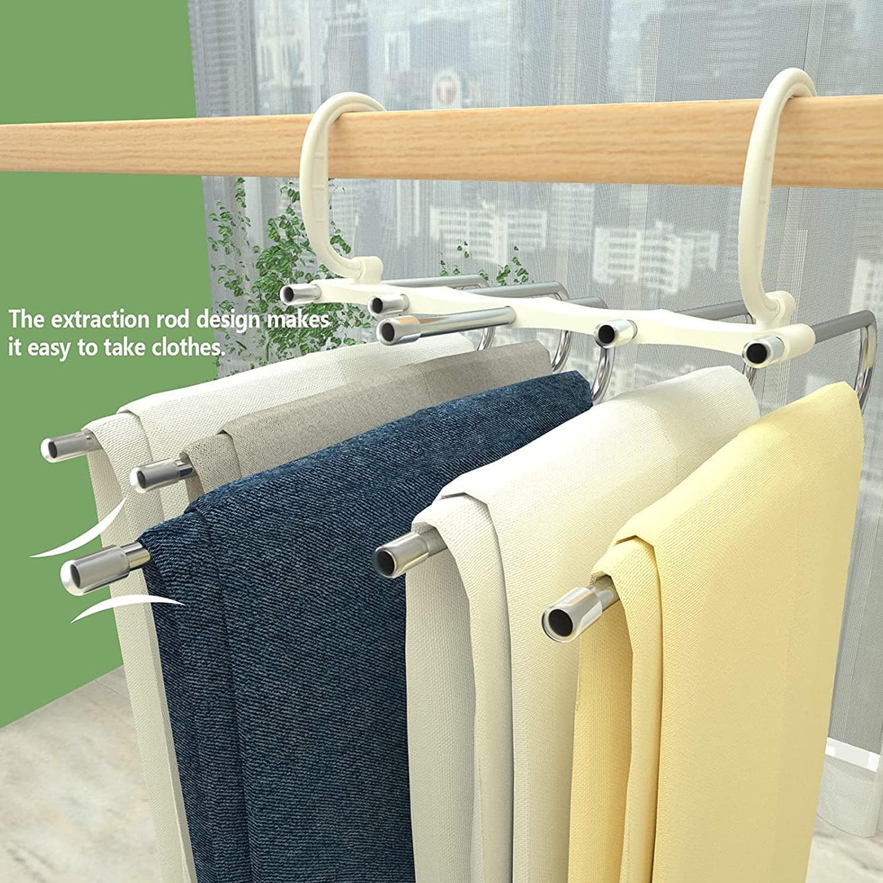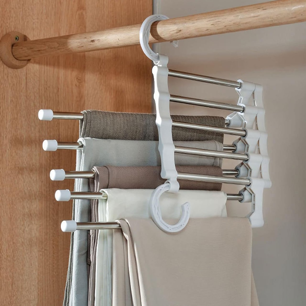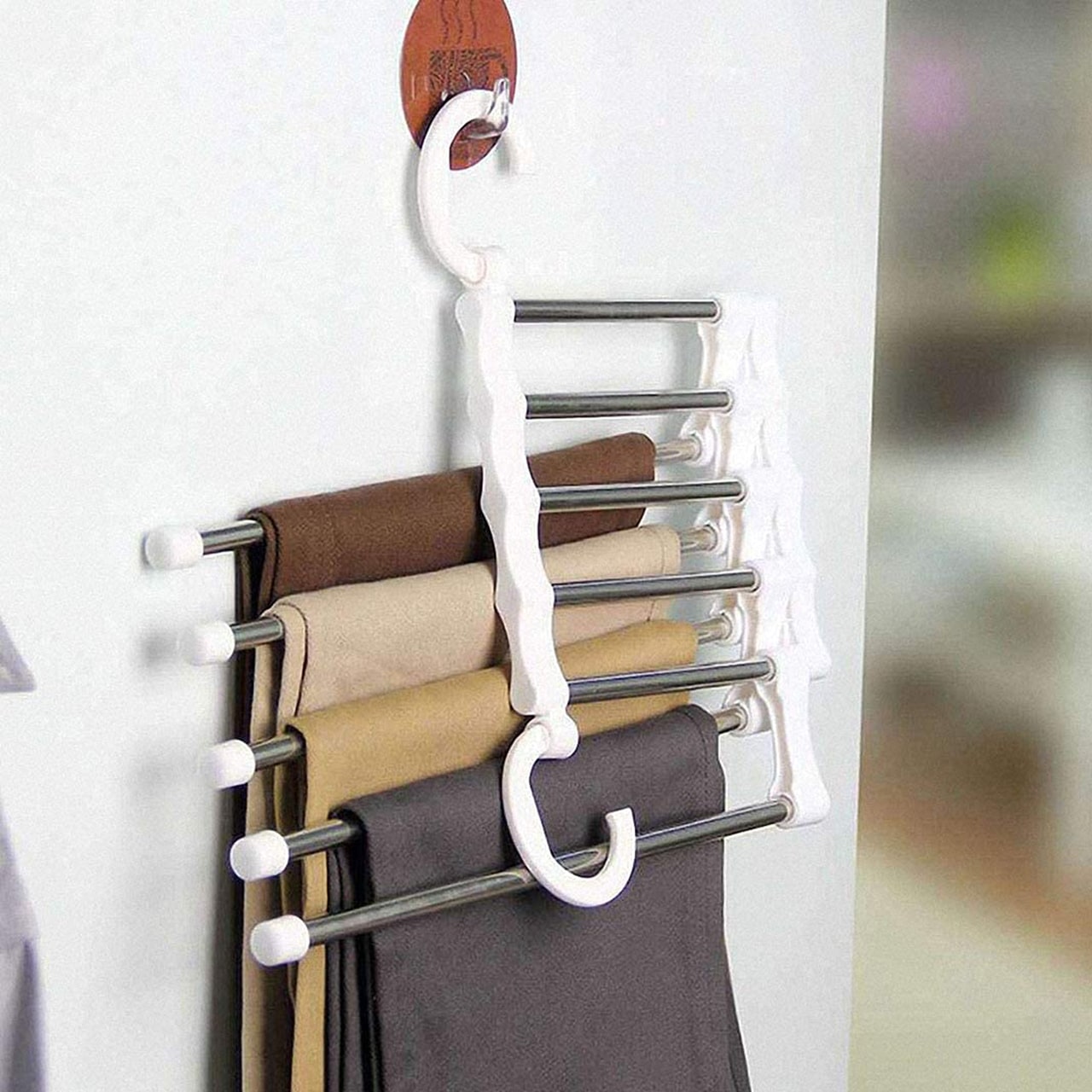 Věšák má 5 přihrádek na zavěšení více oblečení, což znamená úsporu místa ve vaší skříni.